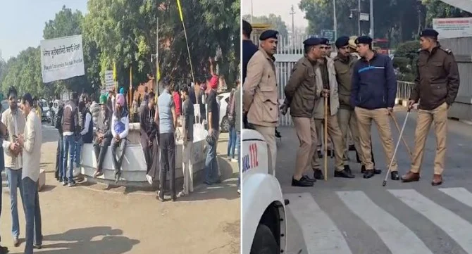 Heavy police deployment remained in place around the administrative block, but the demonstration — called by the PU Bachao Morcha — stayed muted through the morning. Protesters said participation was likely to rise once farmer leaders reached the campus.