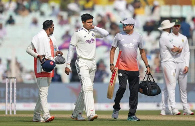 Kolkata, Nov 16: India captain Shubman Gill was on Sunday ruled out of the remainder of the opening Test against South Africa after suffering a neck injury, the BCCI said in an update ahead of day three. The board confirmed that Gill will not be available to bat in the second innings on a surface already showing uneven bounce.